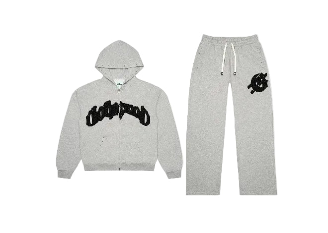 Precision meets attitude in the God Speed Suit 07 – Symmetric Studded Sweatsuit, designed with balanced stud detailing that frames the hoodie and joggers for a bold, race‑inspired aesthetic. The mid‑weight fleece is soft inside and structured outside, keeping its shape while delivering all‑day comfort. Ribbed cuffs and hem, an adjustable drawcord waistband, and secure pockets dial in fit and function, while the symmetrical hardware adds eye‑catching texture without compromising mobility. Built for street laps and off‑duty ease, this set pairs statement design with reliable durability for a confident, everyday finish.